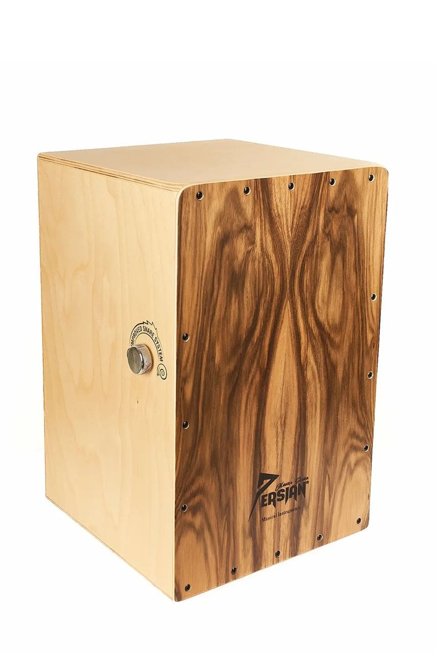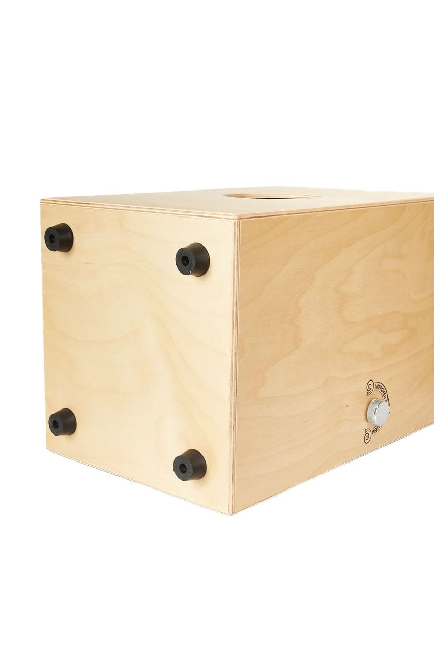 La tapa de Zebra Wood aporta calidez y definición, mientras que el cuerpo de Abedul garantiza proyección y durabilidad. Con las medidas estándar de 310 x 300 x 480 mm, es cómodo para tocar sentado y tiene la presencia sonora suficiente para cualquier entorno, desde estudio hasta escenario.