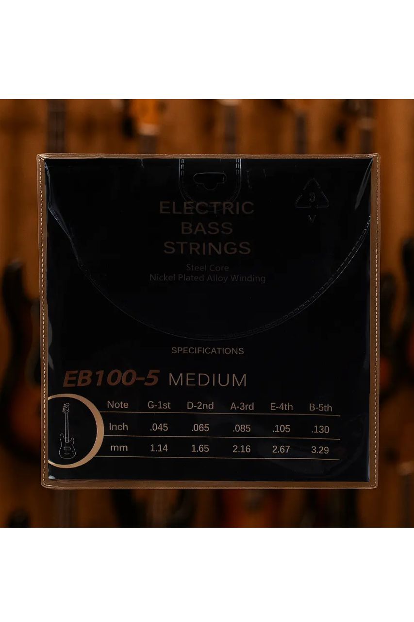 Encordado EB100-5 para bajo eléctrico de 5 cuerdas, con núcleo de acero y entorchado de aleación niquelada. Brinda un tono potente y definido, con graves profundos y agudos claros, ideal para estilos como metal, jazz y funk. Diseñado para afinación estable, durabilidad y resistencia al desgaste, perfecto para conciertos y estudio.