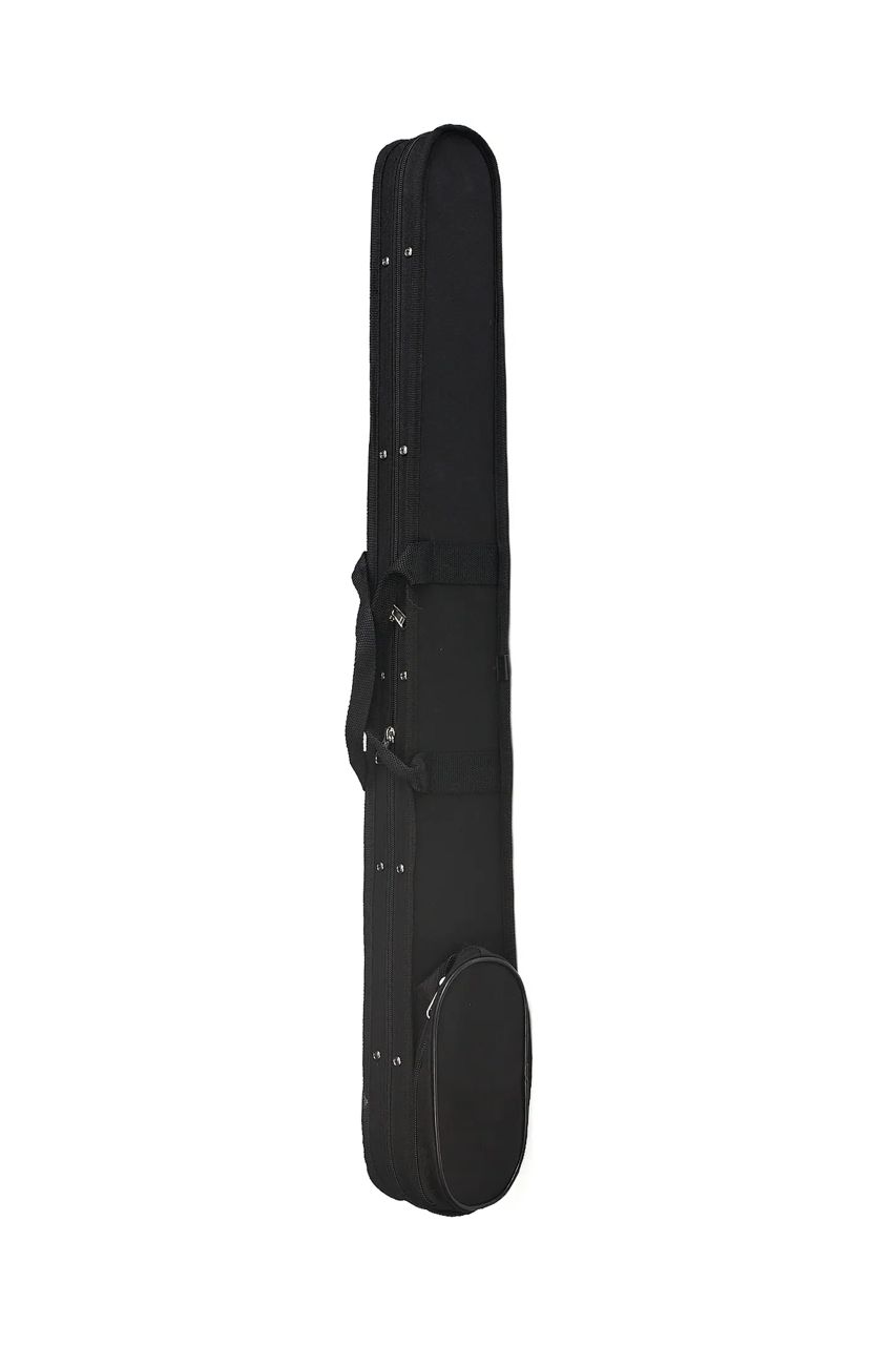 Este modelo es un estuche semiduro para arco de contrabajo. Está diseñado para ofrecer protección superior a las fundas de tela simple, manteniendo un peso ligero.