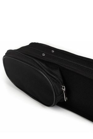 Incluye un pequeño compartimento exterior con cremallera para llevar la colofonia (peguilla) siempre a mano. Tiene una manija de lona reforzada para cargarlo cómodamente. También incorpora una correa ajustable tipo bandolera para llevarlo junto con el estuche del contrabajo.