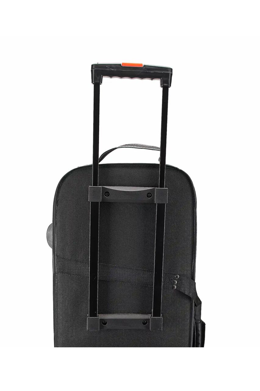 El sistema de ruedas de alta resistencia facilita el transporte. Incluye manija reforzada en el extremo opuesto para llevarlo tipo maleta de viaje (trolley). También cuenta con una manija principal acolchada con cierre de velcro para carga manual equilibrada.