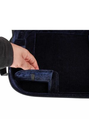 Cada compartimento cuenta con almohadillas de suspensión que alejan los cuerpos del fondo y las paredes, absorbiendo impactos. Cada puesto tiene su propia correa de velcro para el mástil. Así ningún instrumento se desplaza, incluso con movimientos bruscos. El interior está forrado en suave terciopelo azul oscuro que protege el barniz de los cuatro violines.