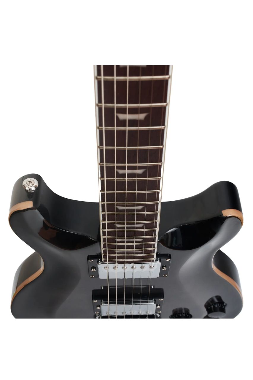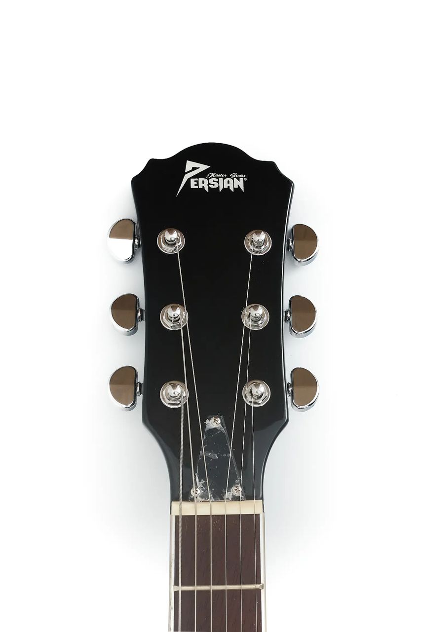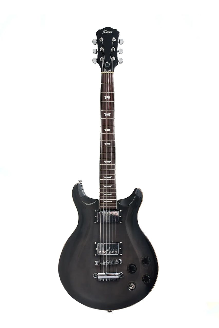 La guitarra eléctrica Persian DC400 presenta un acabado en tono gris oscuro con matices negros, una estética moderna y versátil que se adapta a cualquier escenario o estudio. Su diseño clásico de cuerpo sólido ofrece comodidad y equilibrio, ideal para guitarristas de nivel intermedio que buscan un instrumento confiable y con buena presencia.